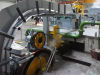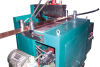 The operation section consists of compaction roller, extrusion wheel, cavity and stock guide. There is a annular groove around the extrusion wheel. The copper bar is fed from the groove. When the shoe installed with the feed guide and the cavity closes and compacts, the cambered surface of the feed guide and cavity should coincide with the circumference of the extrusion wheel and maintain a reasonable working clearance. The extrusion wheel rotates under the drive of the spindle motor and the copper bar compacted by the compaction roller in the annular groove is fed continuously under the action of friction. The movement of the bar in the groove is obstructed in front of the striker plate in the cavity, which will make the bar heat and deform so as to be extruded into the cavity. In the cavity, the heated and deformed bar will be squeezed out through the extrusion die to form products. The sectional dimension and shape of the product depends upon the die. The products of different specifications can be produced through simple change of dies.